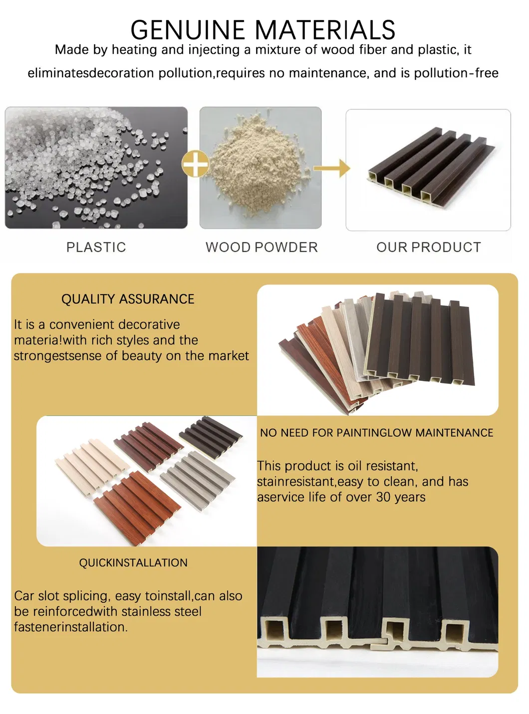 | Material | Wood PVC, Calcium powder, Wood powder |
