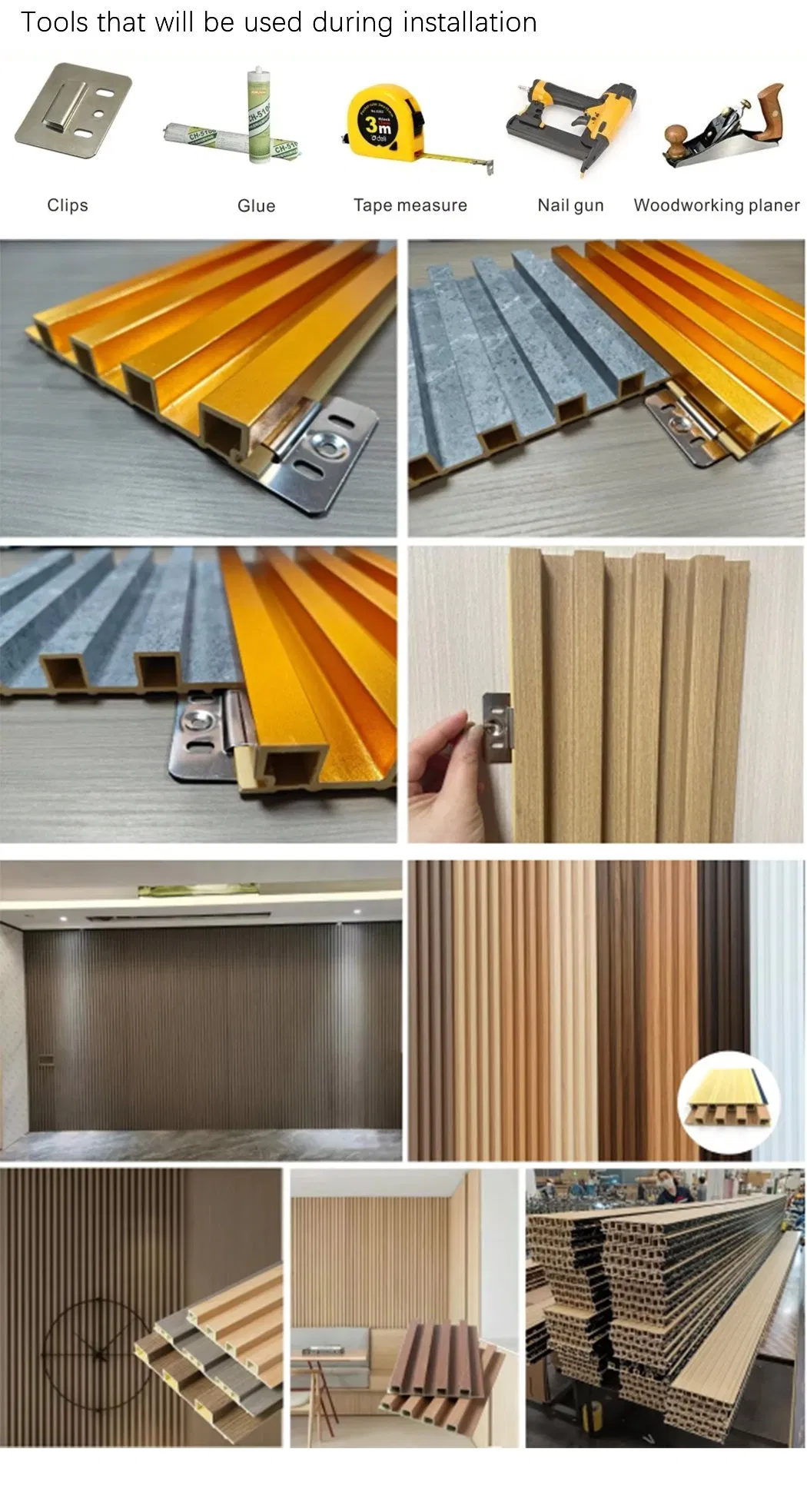 | Product Name | Wholesale Price Grain Interior Wall Cladding WPC Fluted Panel |